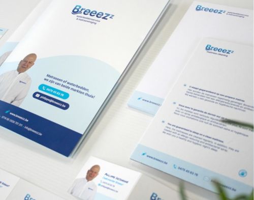 Denk aan visitekaarten, briefpapier, mappen, notitieblokken, flyers, stickers, ...