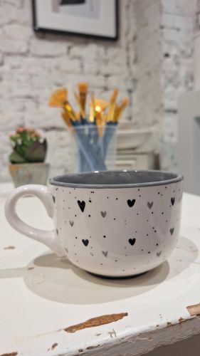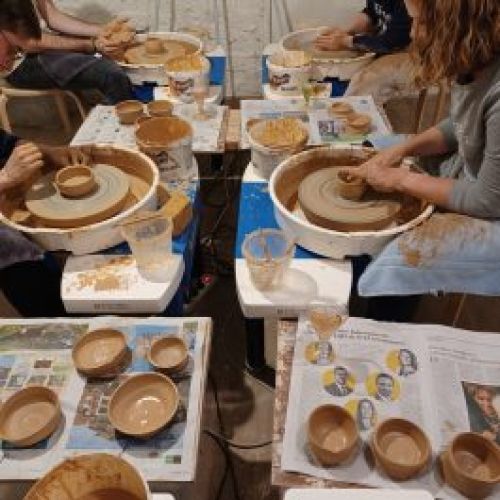 Kies een stuk keramiek, kies een paar kleurtjes en laat je volledig gaan. Een warme chocolademelk of verse gemberthee om het af te maken.